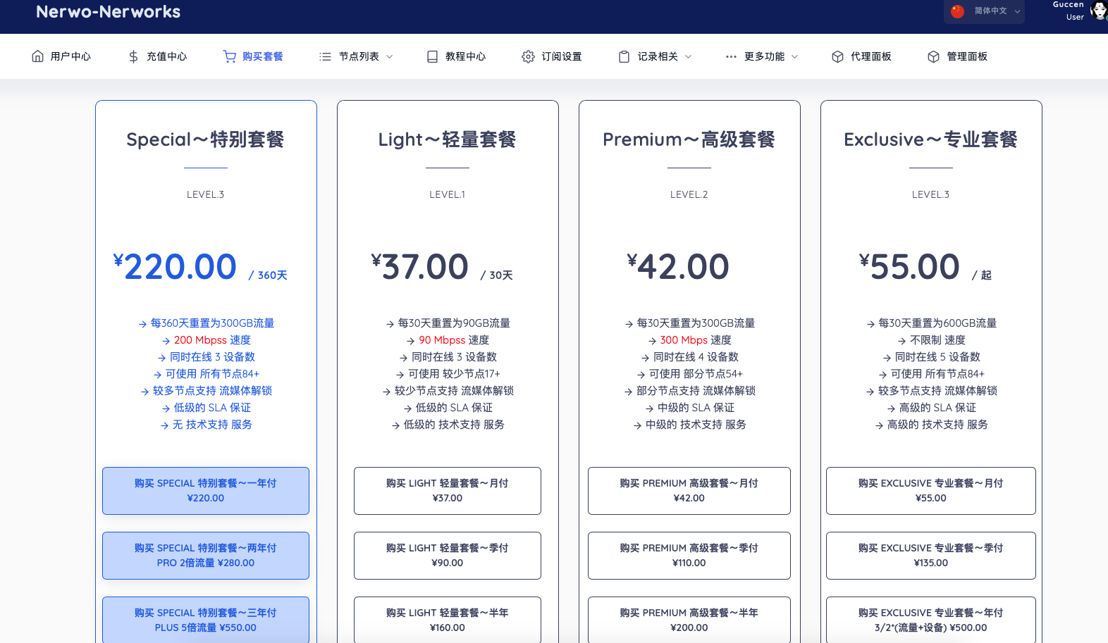 3、补充:如需升级套餐(前后两次购买套餐不属于同一系列)请直接购买想要的套餐，然后建立工单我们会帮您将旧套餐的剩余价值折算到新套餐内(会有适当奖励)；