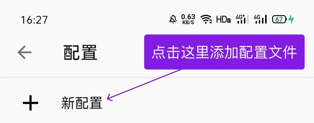 订阅设置 复制好了Clash订阅之后打开Clash for Android应用程序。点击配置
