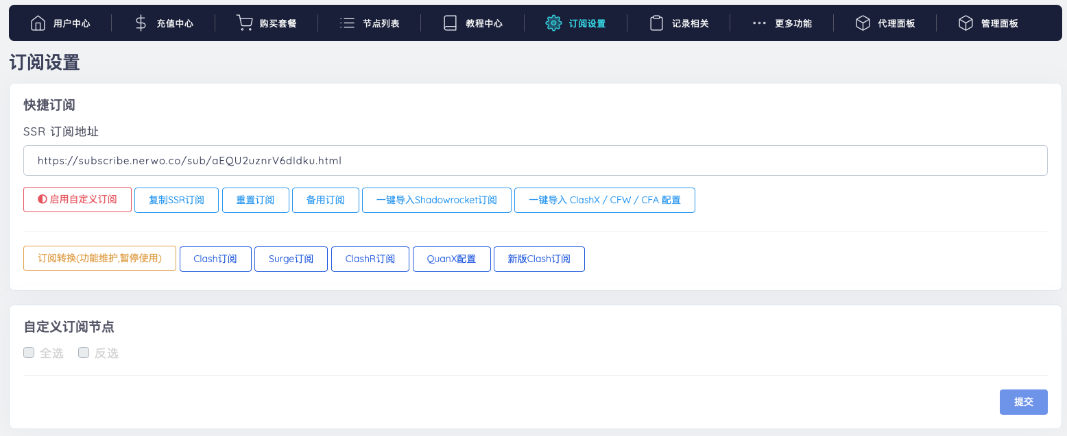 登录Nerwo网站，在订阅设置里复制 Clash 订阅链接